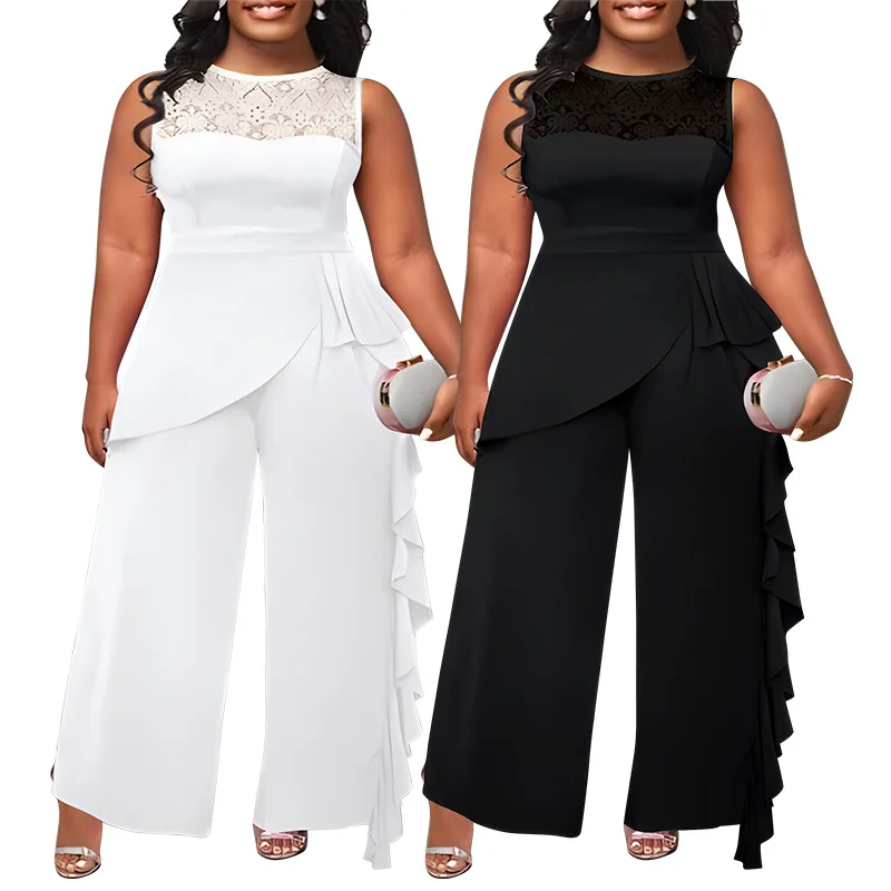 Wholesale Plus Size Wide Leg Pant Set Clothing Sexy Style Solid Color Jumpsuit for Women